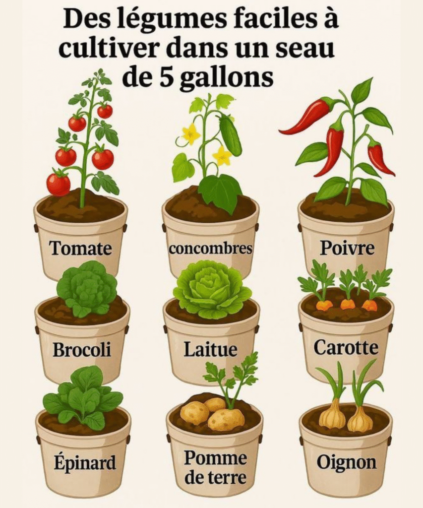 Cultiver des légumes chez soi est plus facile qu’on ne le pense, même avec peu d’espace. Grâce à un simple seau de 5 gallons (environ 19 litres), vous pouvez produire une belle variété de légumes frais, parfaits pour le balcon, la terrasse ou un petit coin de jardin. Cette méthode est idéale pour les jardiniers urbains ou débutants.